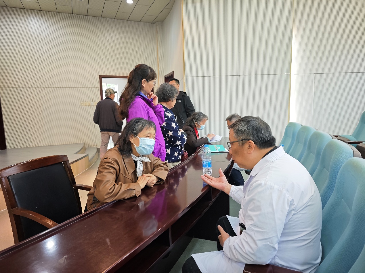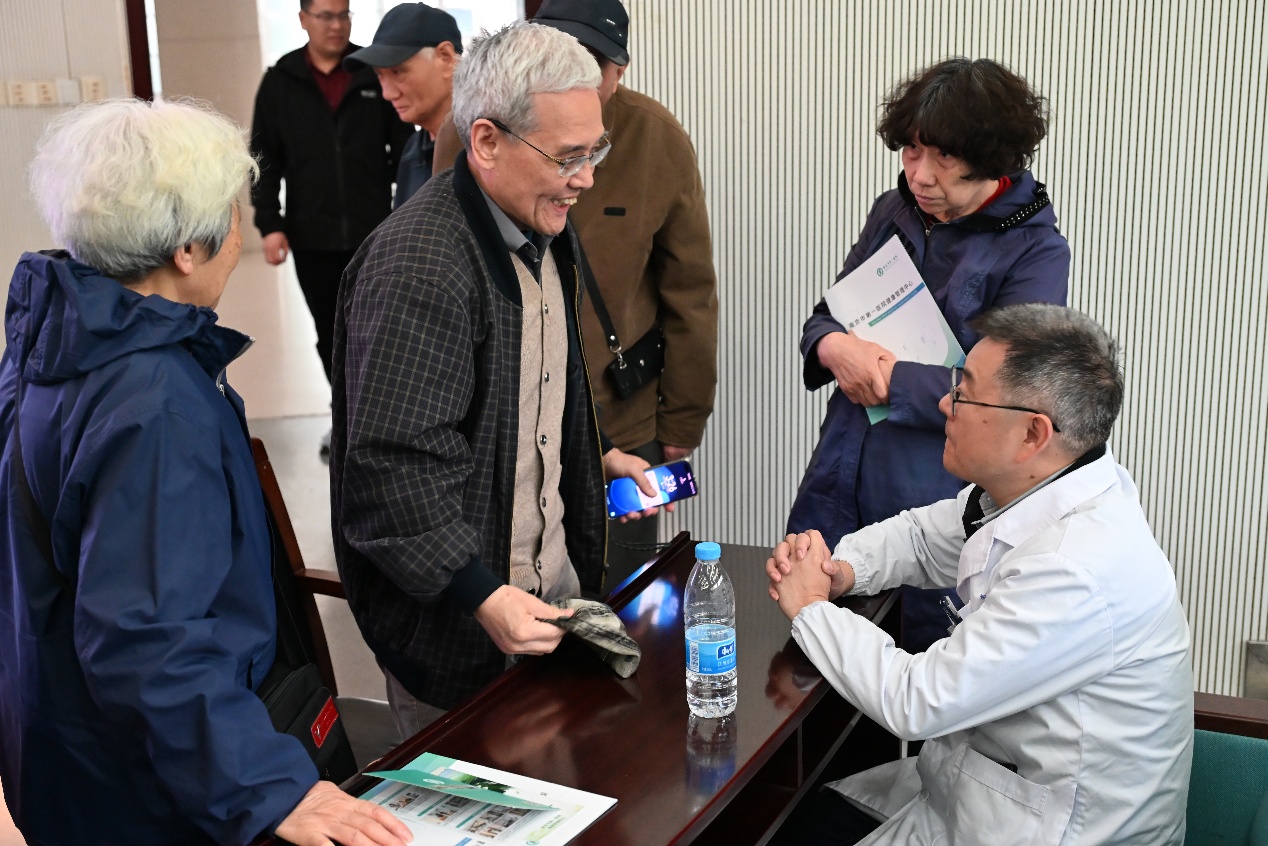 讲座结束后,神经内科及健康管理中心主任王军、泌尿外科主任沈明顺和贾海波主任一起现场开展免费义诊。面对老同志们提出的各类健康困惑,专家们凭借精湛医术与丰富经验,逐一给予专业精准的分析与个性化建议。